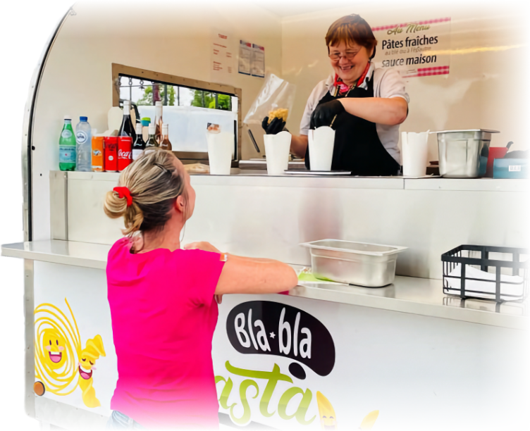 Grâce à un partenariat avec la ferme de la Croix de Villers-Le-Bouillet, le Food Truck Pasta Bla-Bla vous propose des pâtes fraîches, en cornet, napées de délicates et onctueuses sauces faites maison.